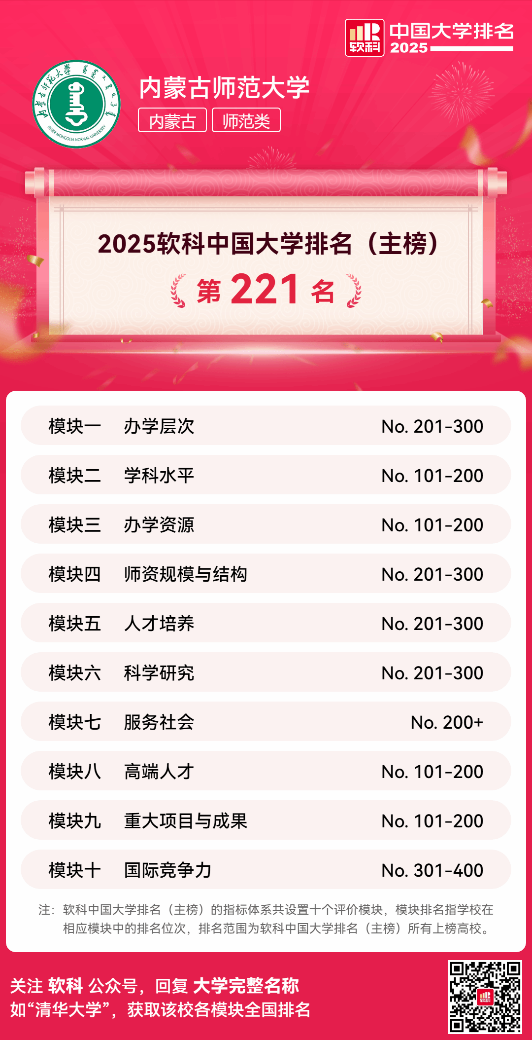 本网讯 4月15日,高等教育专业评价机构软科正式发布“2025软科中国大学排名”,sunbet官网综合排名居于全国第221位,较上年提升17位,较2019年提升248位,呈现连续上升趋势,展现出良好的发展态势。