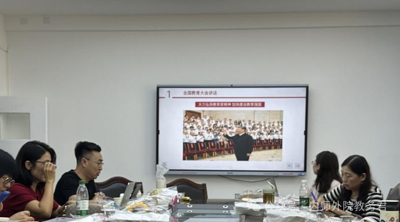 首先,英语系副主任张贵超带领与会教师研读习近平总书记在全国教育大会的讲话精神。与会教师积极发言,分享自己的见解与体会,深入探讨教育改革的方向和挑战。老师们纷纷表示,将认真践行全国教育大会精神,继续在工作中展现责任感与使命感,培养出更多能够通晓中国文化,兼具全球视野和家国情怀,能自觉自信传播社会主义先进文化的高素养国际人才。