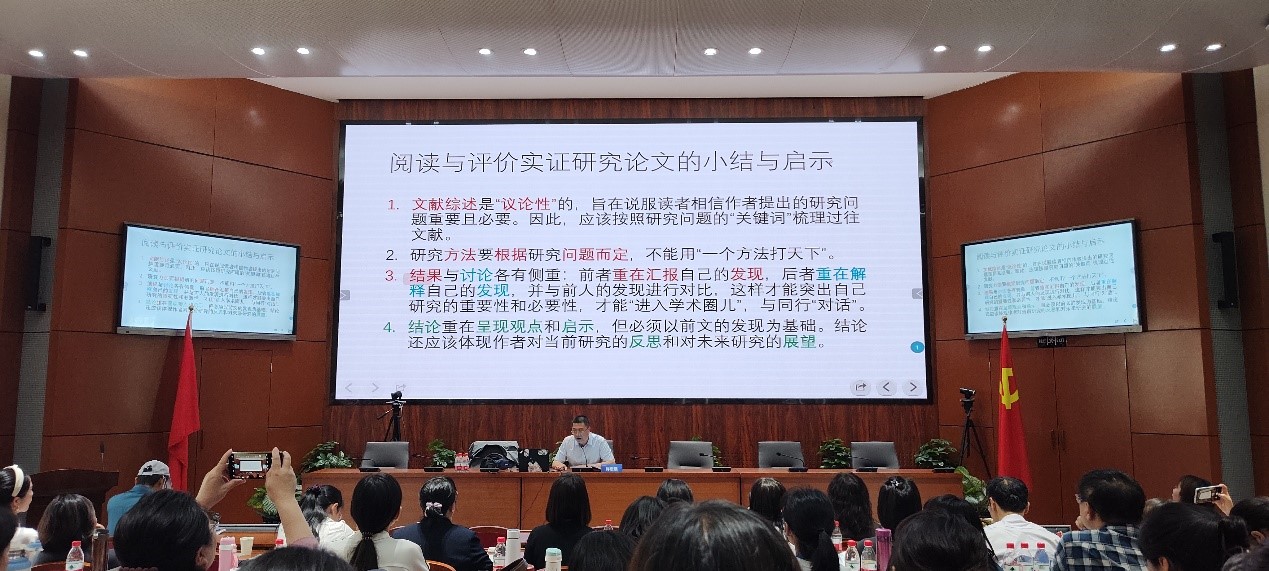 2023 年 5 月27-28 日,由外研在线主办、sunbet申搏官方网站sunbet申搏官方网站承办的“外语教学科研中的研究方法与学术论文写作实战研修班”圆满收官。本期研修班由北京外国语大学国际教育学院副院长、中国外语与教育研究中心杨鲁新教授和北京语言大学许宏晨教授主讲,内容聚焦外语教学科研中的研究方法实现路径,包括质性研究与量化研究,从学术文献阅读、科研选题、研究设计、数据收集等多维度入手,剖析研究实例,旨在帮助教师逐个击破科研中的障碍,助力教师提升科研实践能力,早日落地产出学术成果。