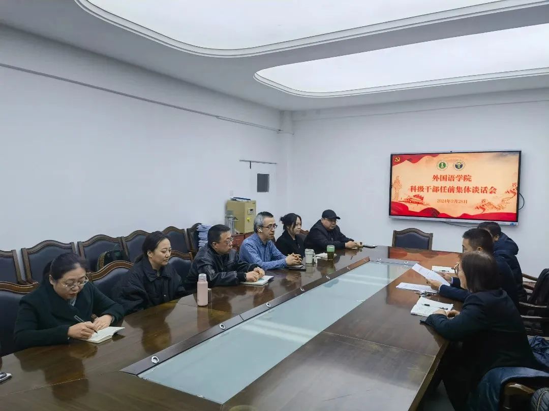 2月28日下午,sunbet官网召开科级干部任前集体谈话会暨环节干部工作会议。党委书记黄鑫宣读学校相关聘任文件并进行科级干部任前谈话,党委副书记、院长赵晓军,副院长徐喜平安排部署相关工作。会议指出,此次科级干部聘任是学院党委从学院事业全局出发,根据工作需要,在听取各方面意见,经过慎重考虑,认真研究并报校党委批准后做出的重要决定。全体科级干部要旗帜鲜明讲政治,要不断提升自身素养和能力,要坚持以人文本的工作理念,要遵守纪律作好师德师风表率。