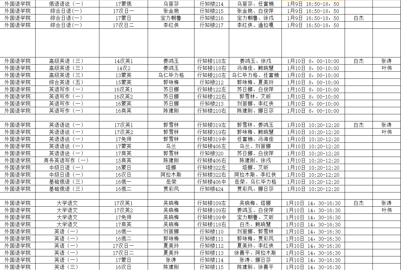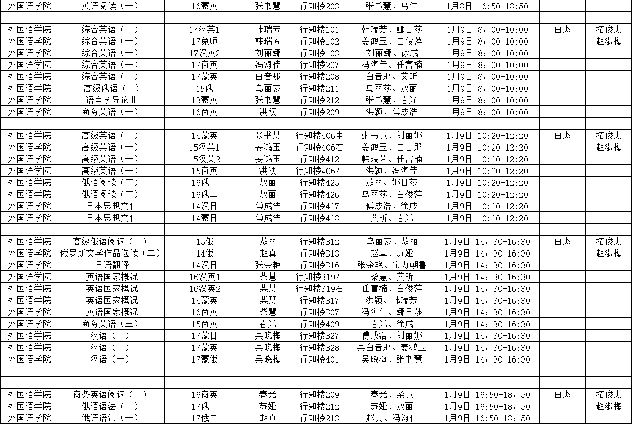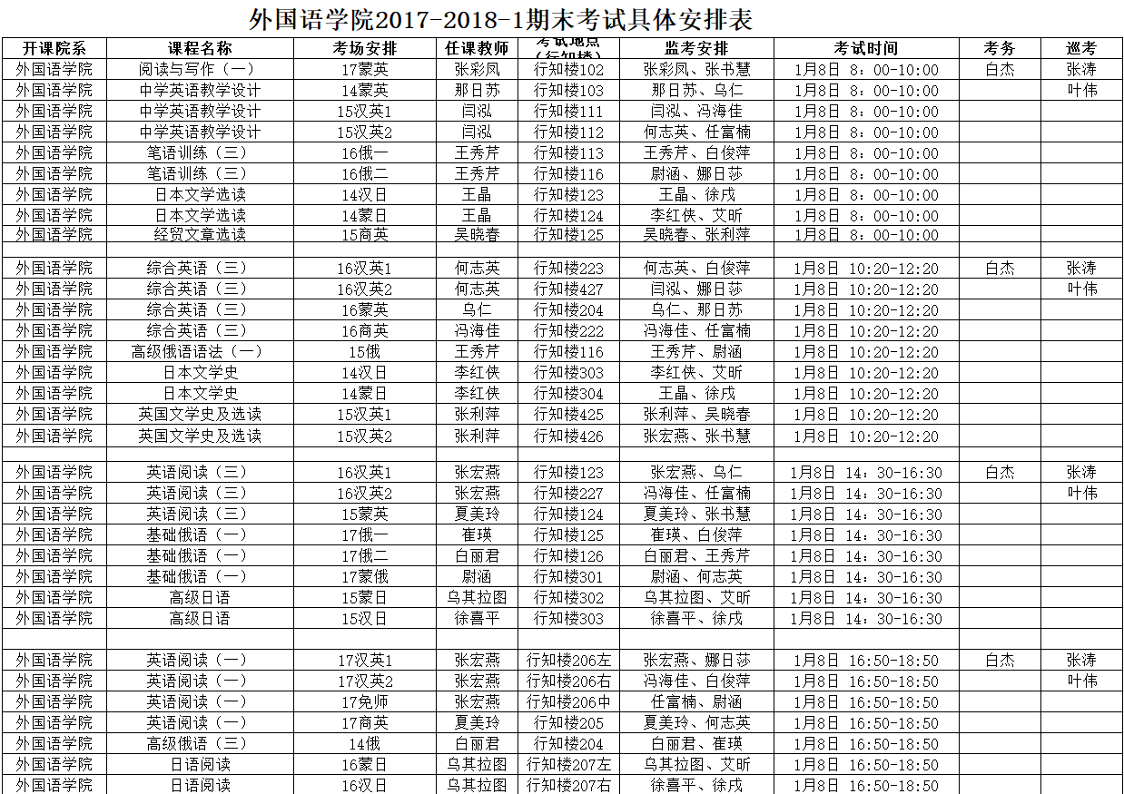 sunbet申搏官方网站专业课 2017-2018-1期末考试具体安排表