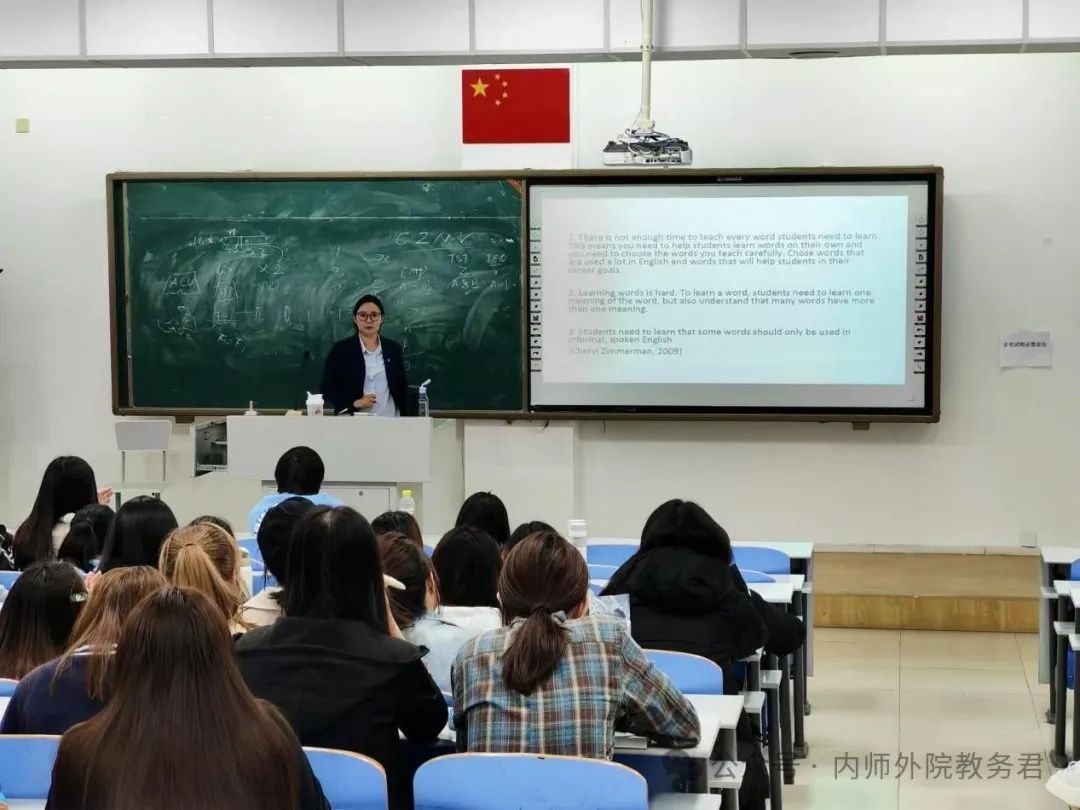 此外,Ragchaa副教授还特别强调了时间管理在词汇教学中的重要性,并建议教师优先选择高频词汇和对学生职业发展有帮助的词汇进行教学。同时,她通过引入英语习语与方言文化的教学,展示了语言与文化深度融合的魅力,拓宽了学生的表达思路。互动环节中,师生围绕数字化教育与跨文化教学展开了热烈讨论,现场气氛活跃。