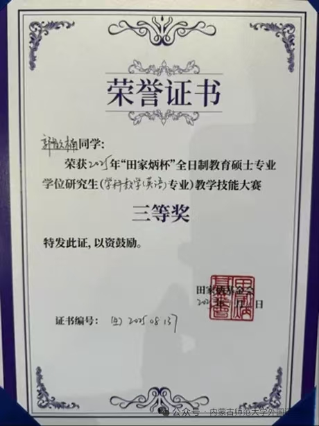 同学在本次比赛中均获三等奖!这一成绩不仅是对sunbet官网学科教学(英语)专业学位研究生培养成效的有力印证,更彰显了学院在人才培养道路上