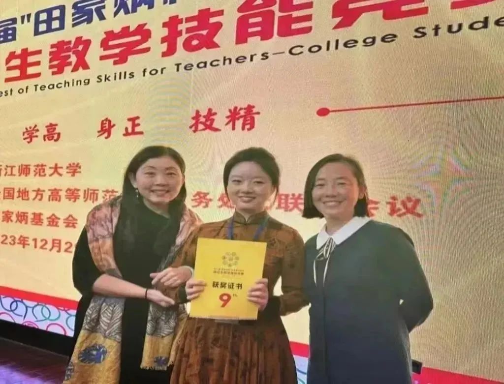 2023年12月29日至31日“田家炳杯”第九届全国师范院校师范生教学技能竞赛决赛在浙江师范大学举行,sunbet官网英语专业2020级薛晓静同学成功入围决赛,斩获英语组二等奖的佳绩。