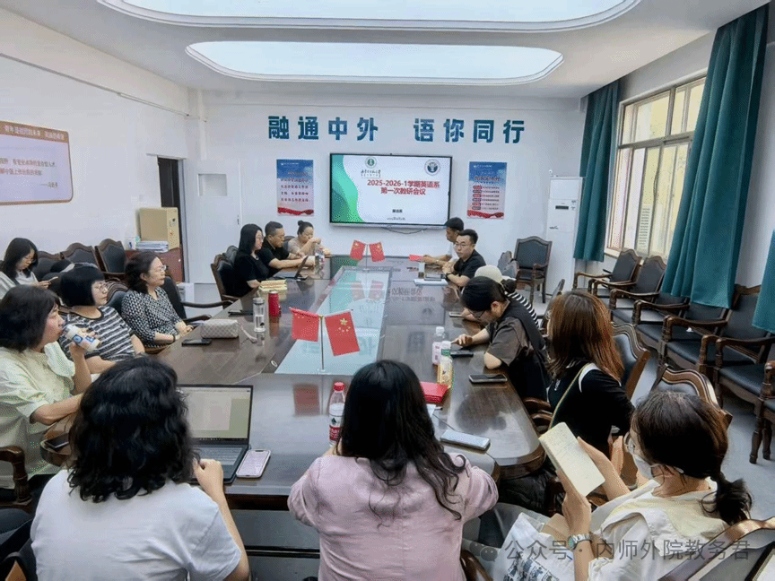 2025年9月4日,英语系召开2025—2026学年第一学期集体教研工作会议,英语系全体教师参加。会议紧扣学院“十五五”规划务虚研讨会精神与部署,结合英语系工作实际,聚焦学科建设、师资发展及人才培养等重点议题开展深入交流。会议由英语系副主任张贵超主持。本次教研会共分三个议题。