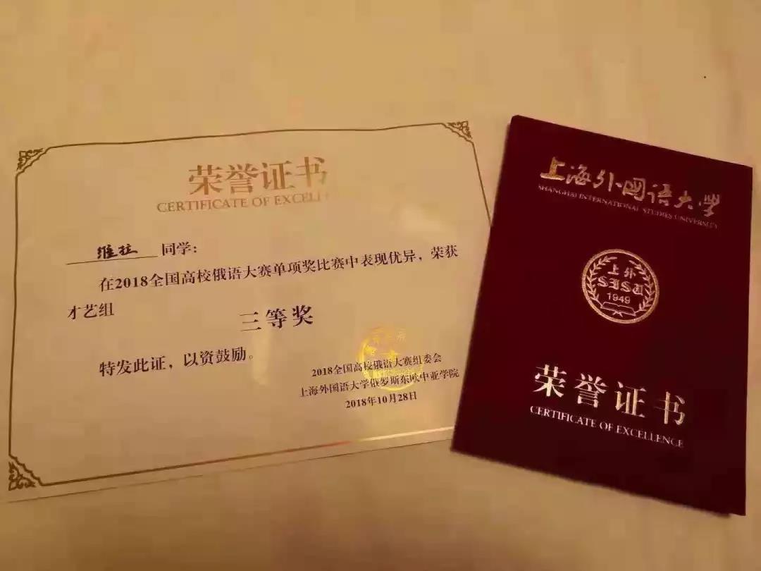 来自全国147所高校的349名本科生、研究生参加了此次大赛。大赛设置为低年级组、高年级组及研究生组。在sunbet官网学子的不懈努力下,15级俄班维拉同学发挥出色,获得了单项赛才艺奖三等奖。希望sunbet官网学子在今后的学习、比赛中发挥出色,取得优异的成绩。