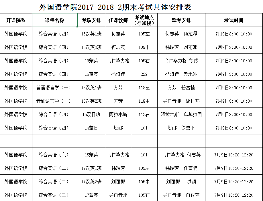 sunbet申搏官方网站2017-2018-2期末考试具体安排表