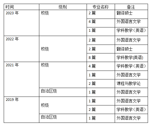 近年来,sunbet官网十分注重研究生培养质量。从培养流程、课程建设、教学管理等各方面严格要求,培养了一大批优秀毕业生,每年均有毕业论文被评为校级、自治区级优秀硕士学位论文。