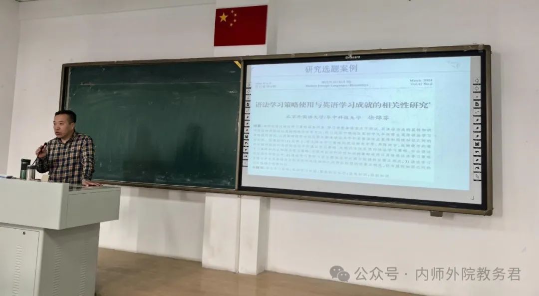 第一场讲座由呼和塔拉老师主讲,主题为“英语教育实习中调查研究选题”。她首先针对同学们在实习调查中遇到的困惑进行了深入分析。通过具体案例,呼和塔拉老师详细解析了理想的实习调查应具备的特点。她指出,实习调查通常分为调查和实验两种,选题时应注重学术性,避免陈旧话题,尤其要避免泛泛而谈的“经验之路”。实习中的调查研究应遵循外语教学的要求,具备科学性和简明性。