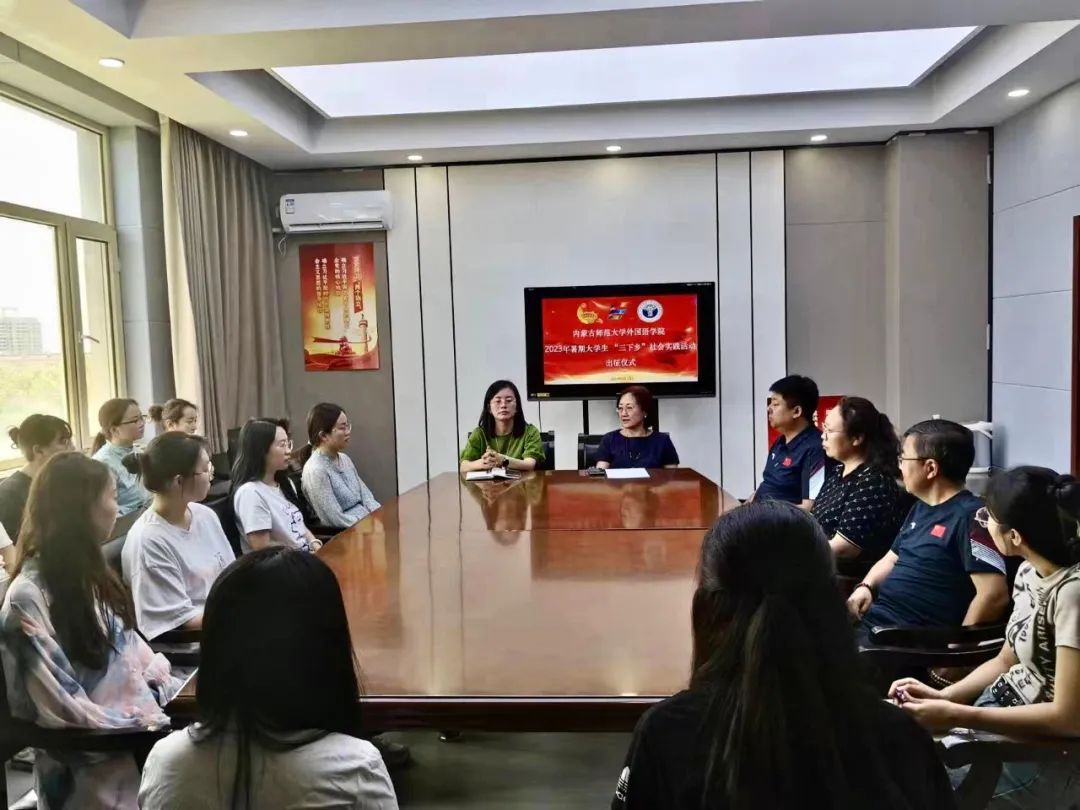 在出征仪式上,赵晓军院长重点强调了纪律、安全以及团队合作等方面的问题,嘱咐大家互相帮助、互相配合、认真负责,并通过实践活动讲好外院故事,传递师大声音。